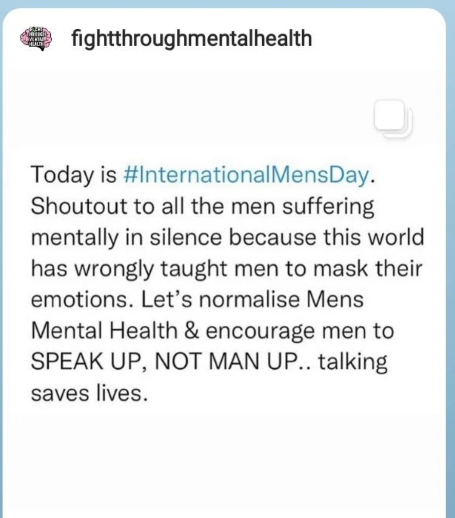 19 November was World Men’s Day. I’m a day late in sharing this, but such is life.